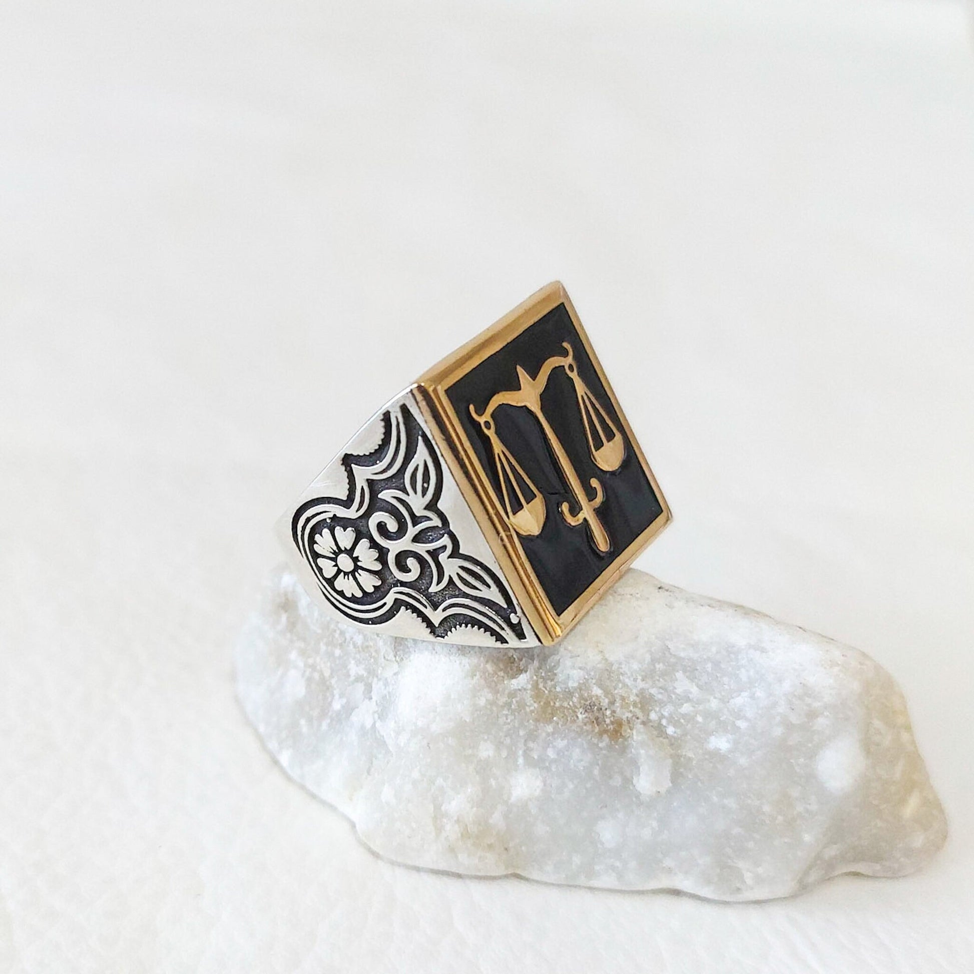 925 Sterling Silver Scales of Justice Men Handmade Ring Without Stones, Libra Silver Ring, Turkish Handmade Ring, Gift for Him , Birthday Gift , Anniversary Gift , Easter Gift , Father's Day Gift , Same Day Free Fast Shipping