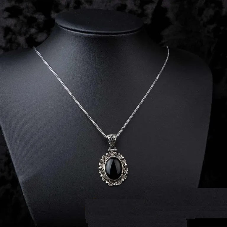 Filigree Handmade Black Aqeeq Silver Pendant