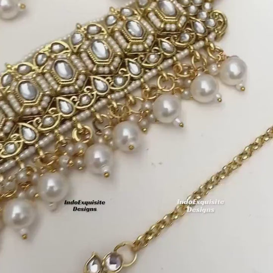 Gorgeous Kundan Choker comes with Jhumki Earrings and Tikka/ Indian Jewelry/Unique Polki and Kundan Jewelry