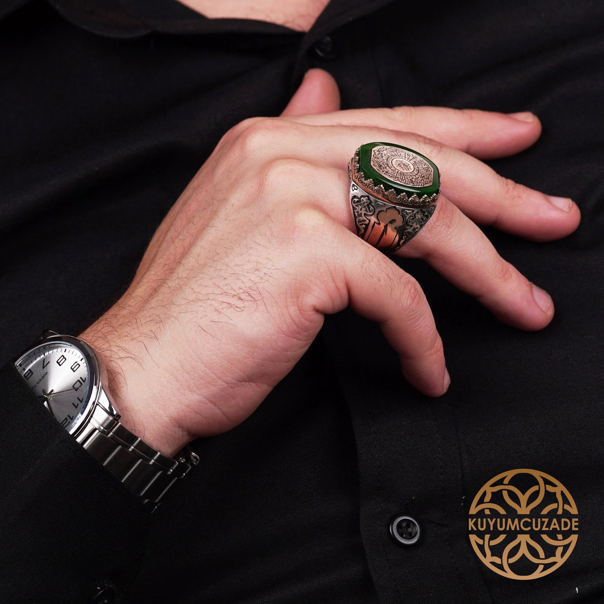 Surah Inshirah Engraved Red Fire Amber Stone Sterling Silver Ring, Arabic ring, Red Amber Stone Silver Ring, Islamic Silver Jewelry for Men