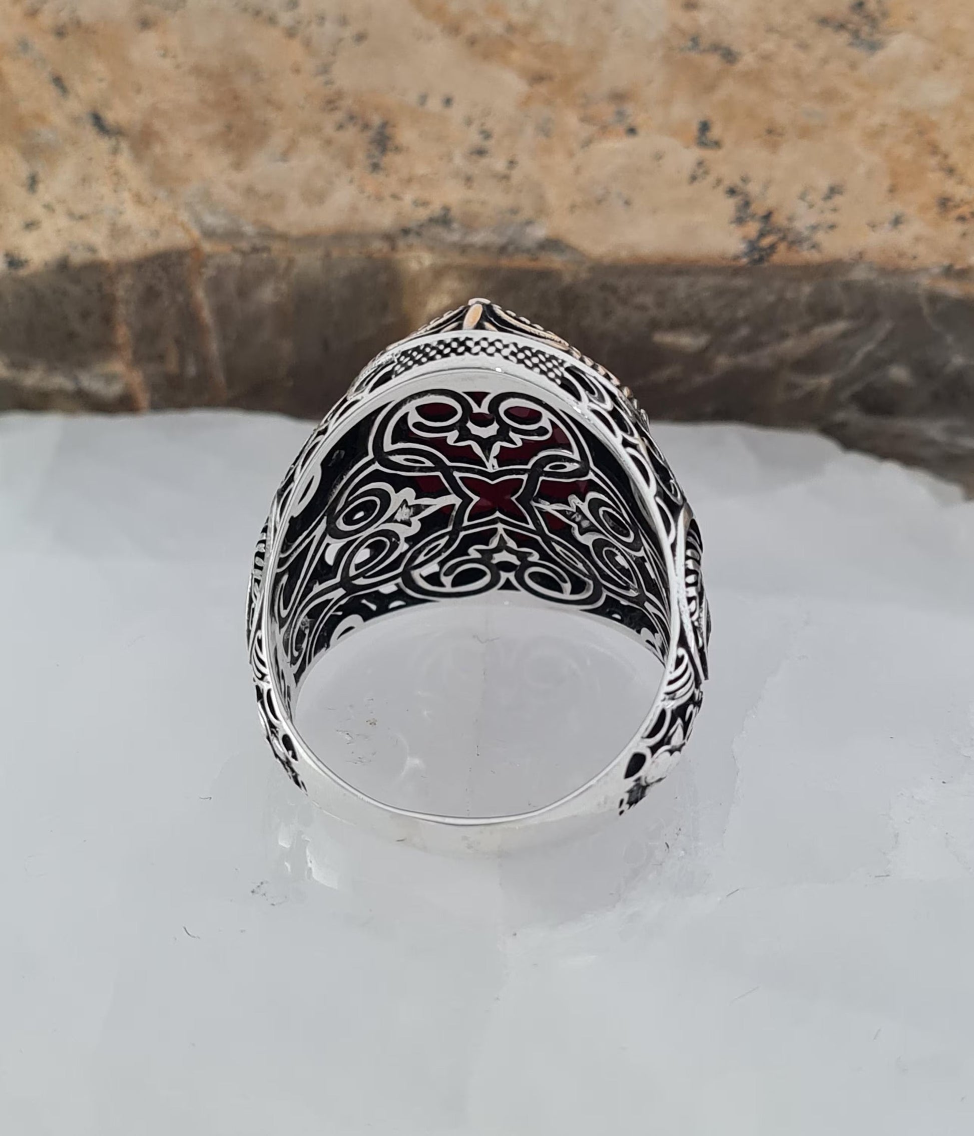 🔯 Handmade 925 Silver Seal of Solomon Ring | Hand-Engraved Natural Red Agate Islamic Talisman Ring