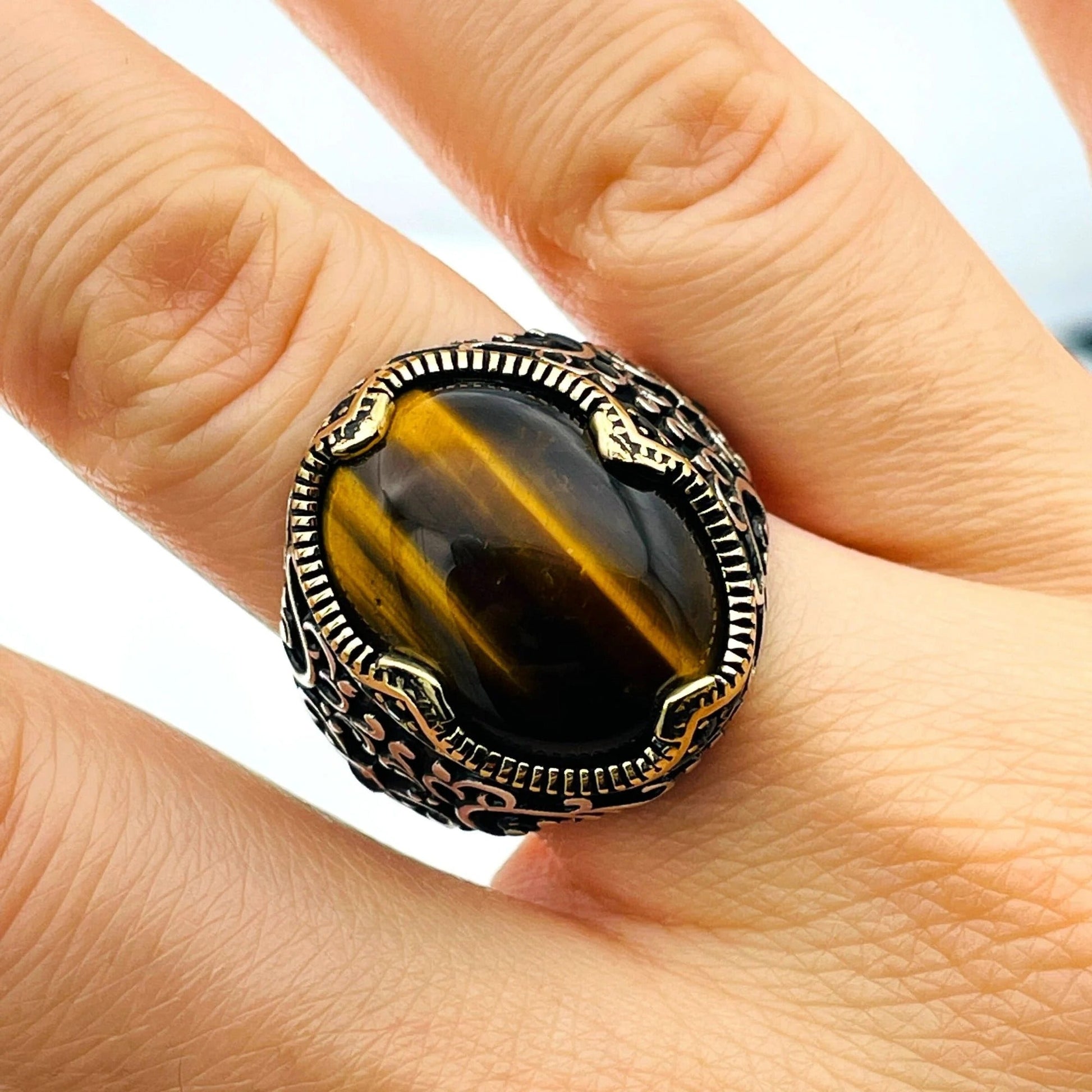 Mens Brown Tiger's Eye Stone Ring