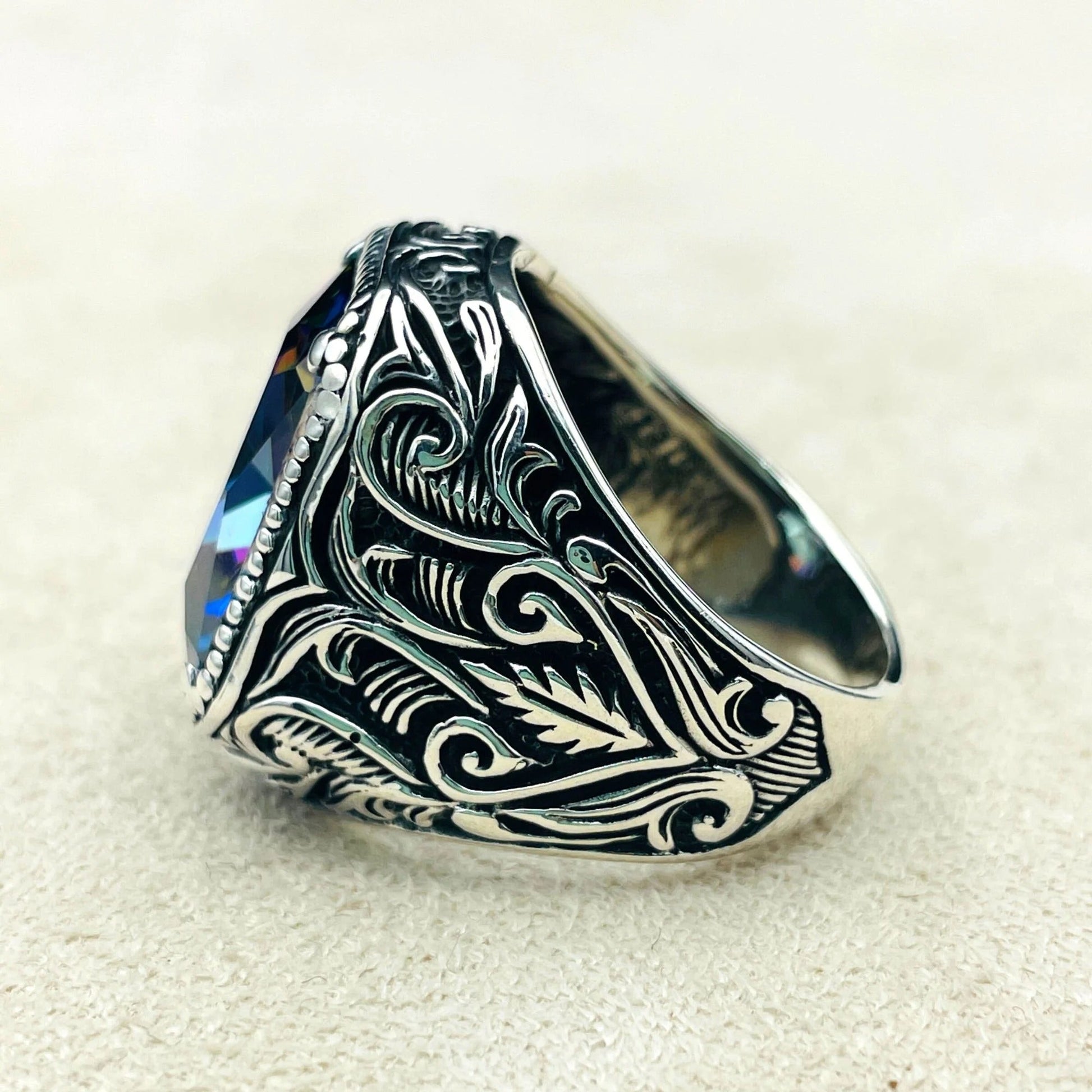 Handmade 925 sterling silver men's ring. Make your father, boyfriend, brother and grandfather happy with silver ring designs. Make them feel valued with these kinds of silver rings made of pure silver for birthdays and special occasions. Attract the attention of those around you with precious stones on silver.