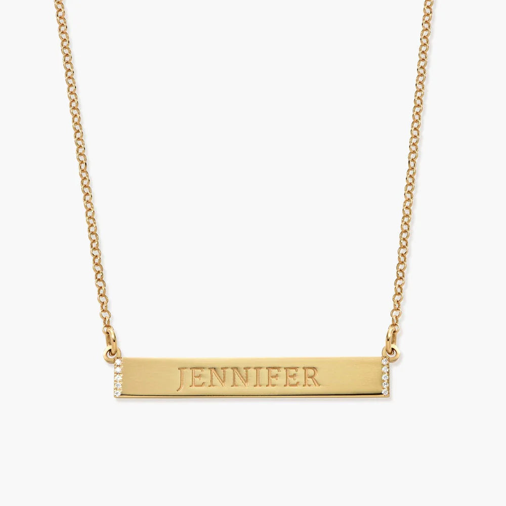 This 18k Gold Plated, and Silver Plated bar necklace with CZ is the definition of contemporary design. With the option to personalize, this necklace is great for everyday wear.
