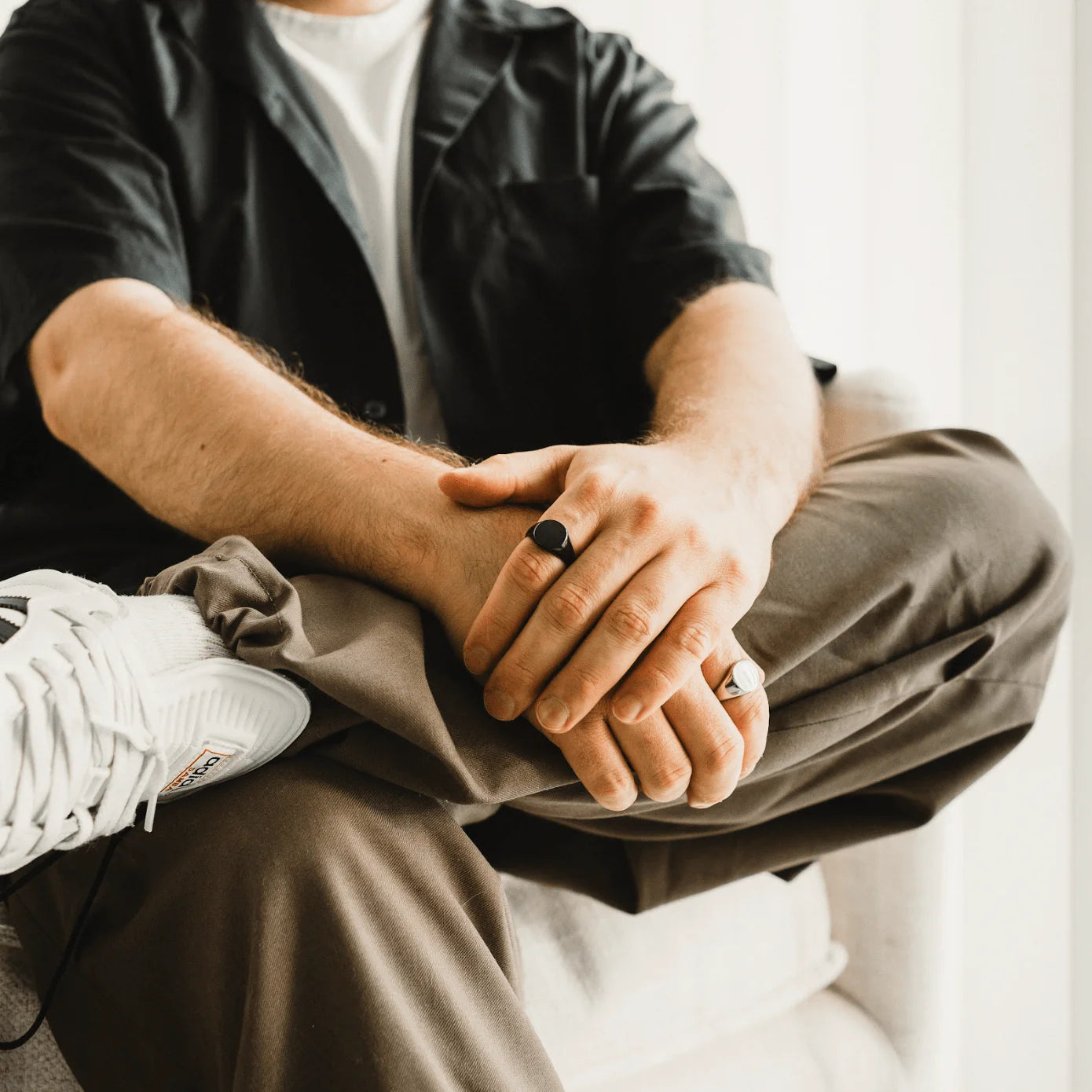 A classic round signet ring is the white tee for a man's wardrobe. Coming to a smooth elevated flat top, this ring is a must-have whether it's standing alone or pairing with others.