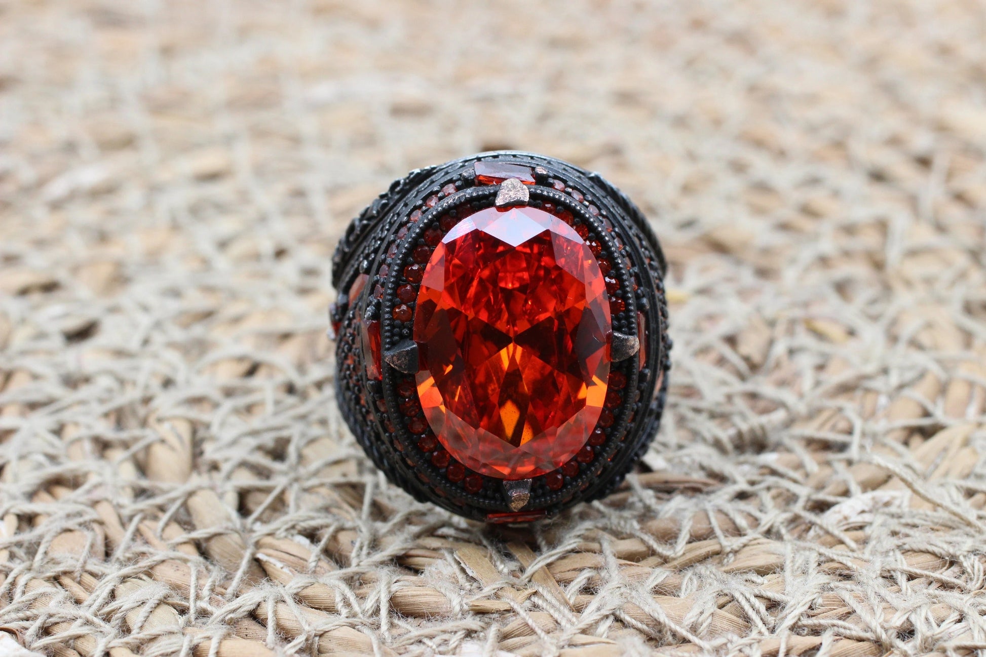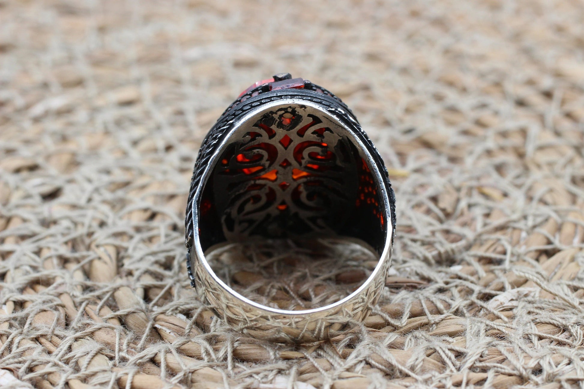 Ruby Ring, Handmade Men's Ring, Turkish Handmade Men's Ring, Ottoman Men's Ring, Men's Jewelry, Gift for Him, 925k Sterling Silver Ring