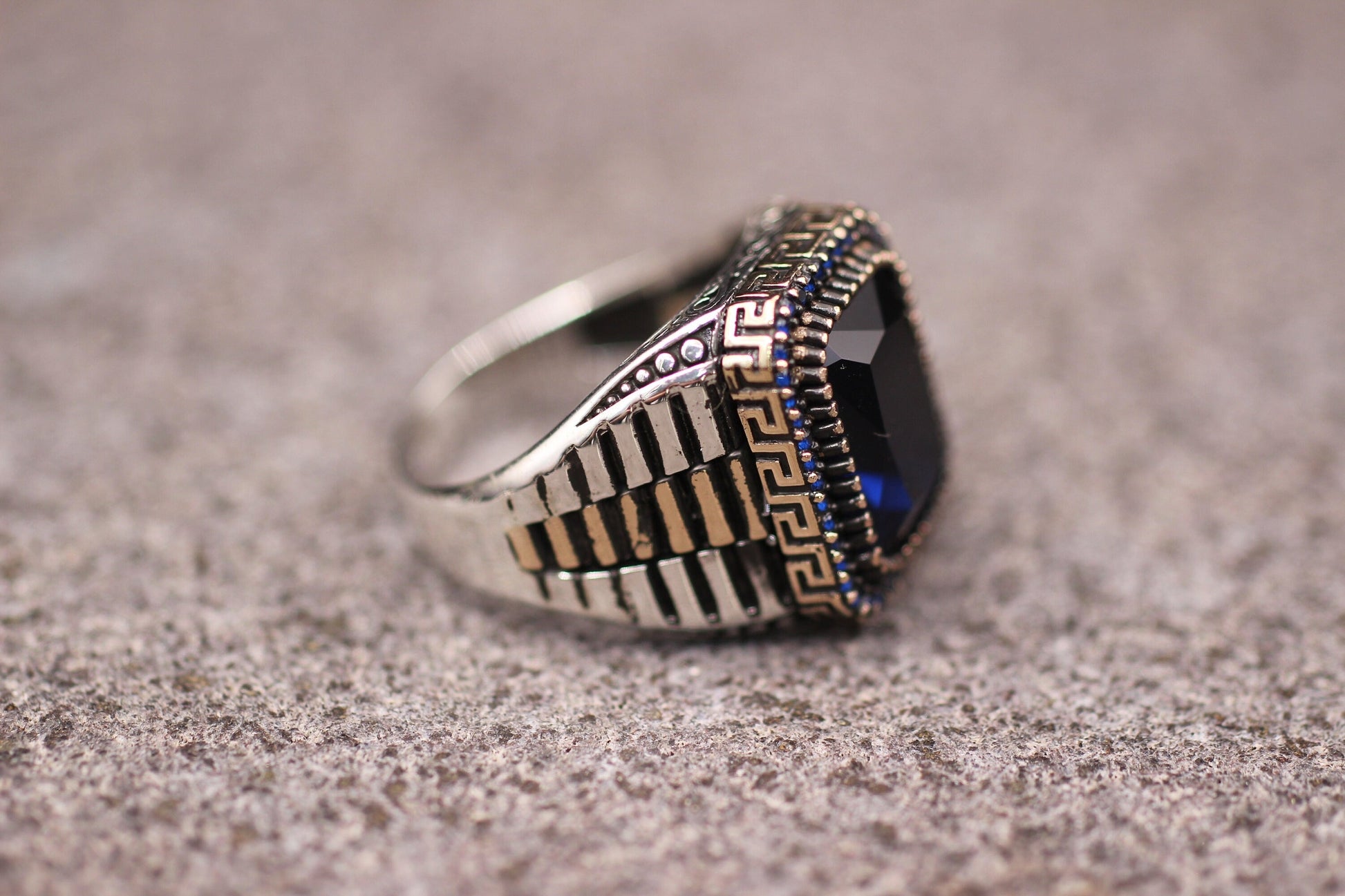 Sapphire Mens Ring, Ottoman Style Ring, Silver 925 Ring, Gift for Him, Mens Handmade Ring , Sapphire Mens Ring, Gift for Him, Sapphire Ring, Gift for Father, Gift for Dad