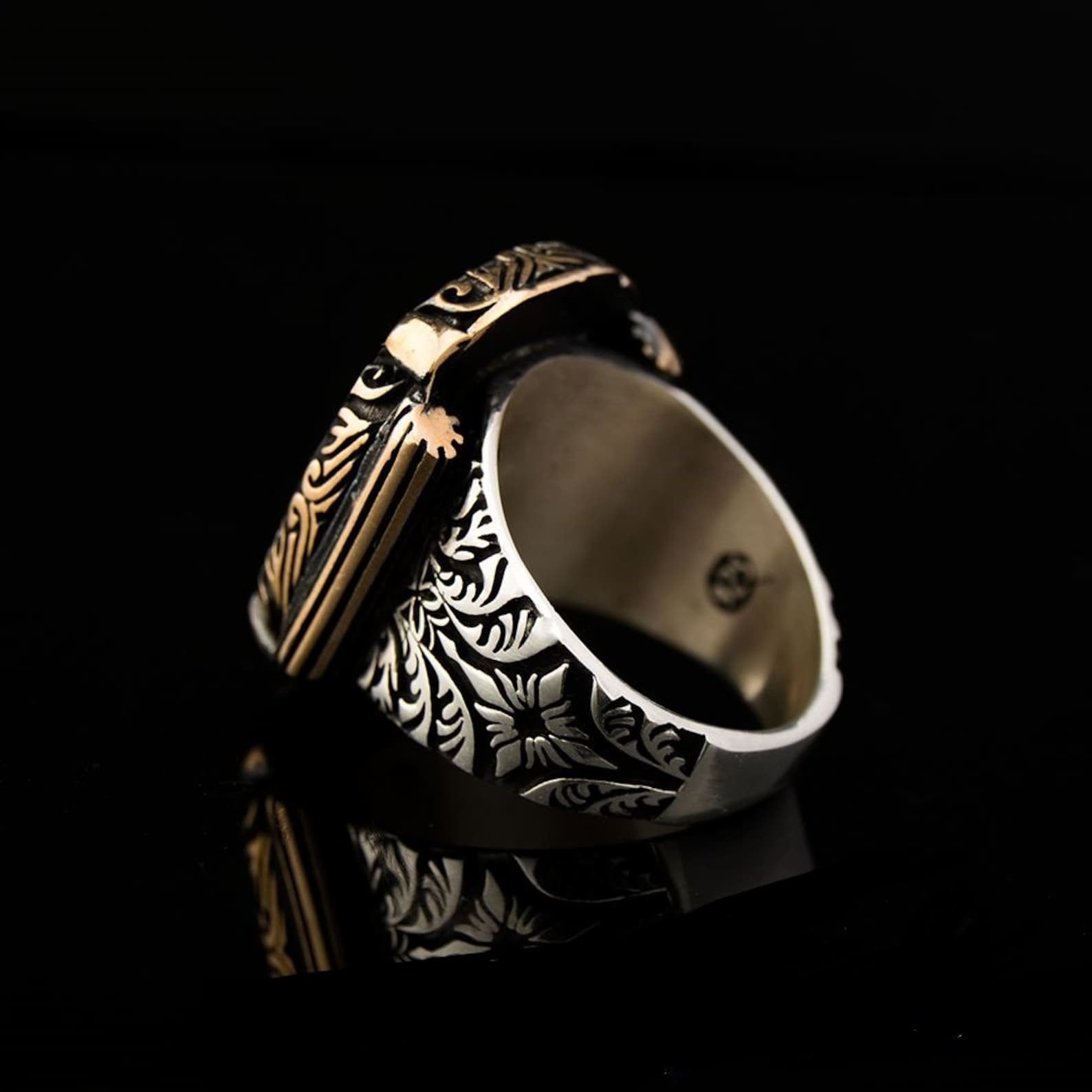 Seal of Prophet Muhammad Green Mina Silver Ring. Handmade in 925 sterling silver. On ring written in Arabic “Mohammed Rasul Allah” which means Mohammed is the Messenger of God. This seal Settled by Prophet Mohammad (SAW). Dimensions of ring is 20 mm x 15 mm. Average weight of Seal of Prophet Muhammad Green Mina Silver Ring is 11 gr. (depends your ring size).