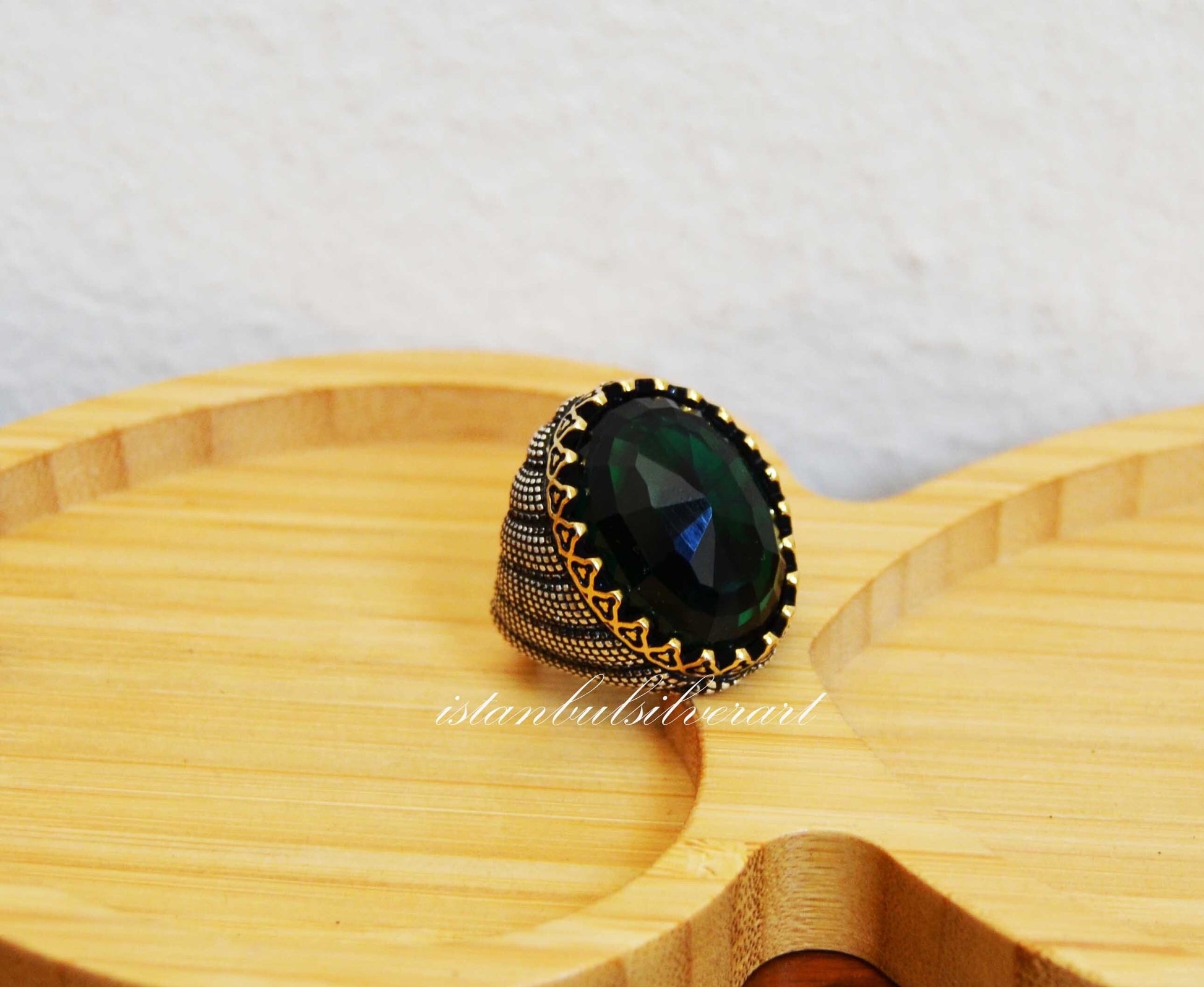 Mens Handmade Ring, Turkish Handmade Silver Men Ring, Ottoman Mens Ring, Emerald Ring, cubic zircon, Gift for Him, 925k Sterling Silver Ring