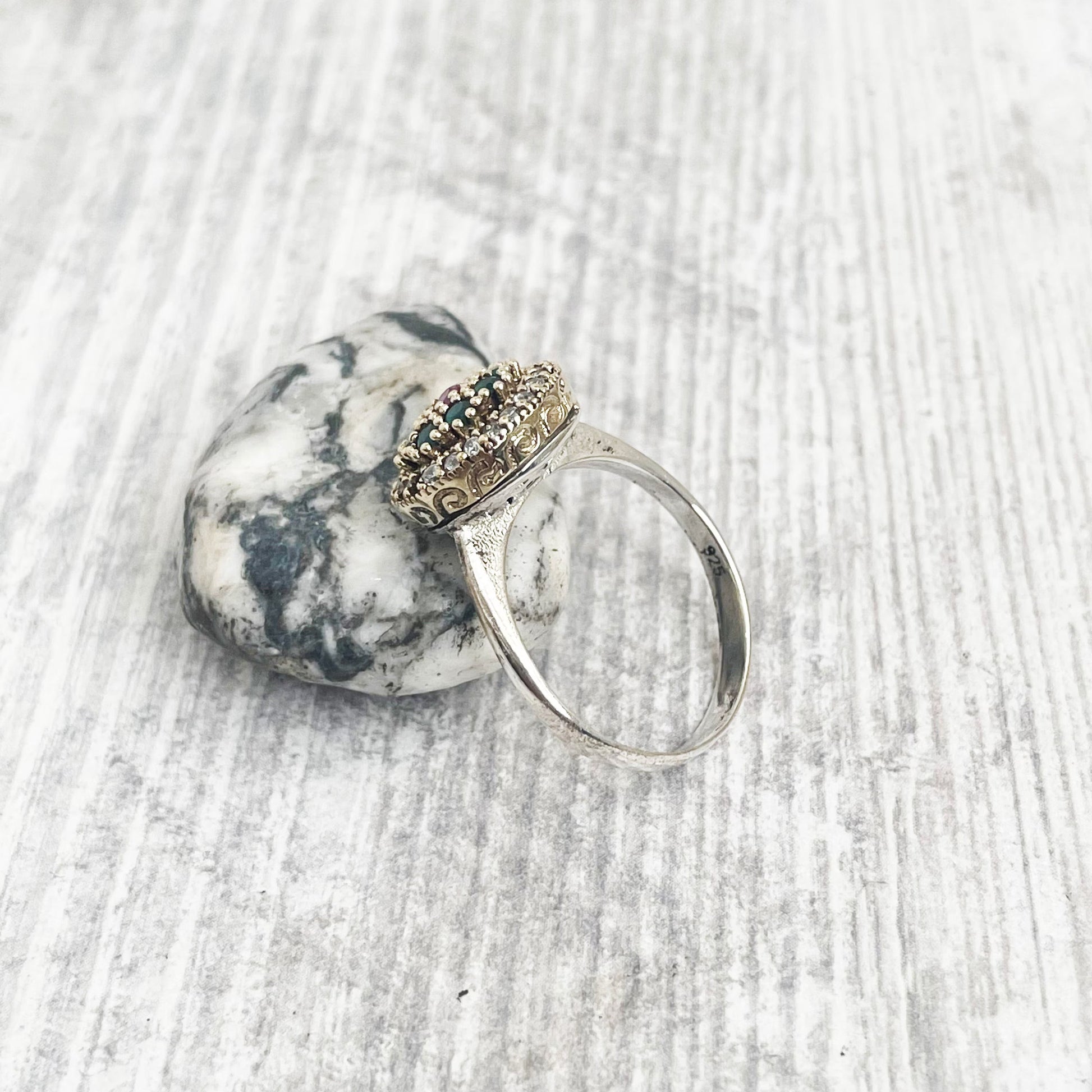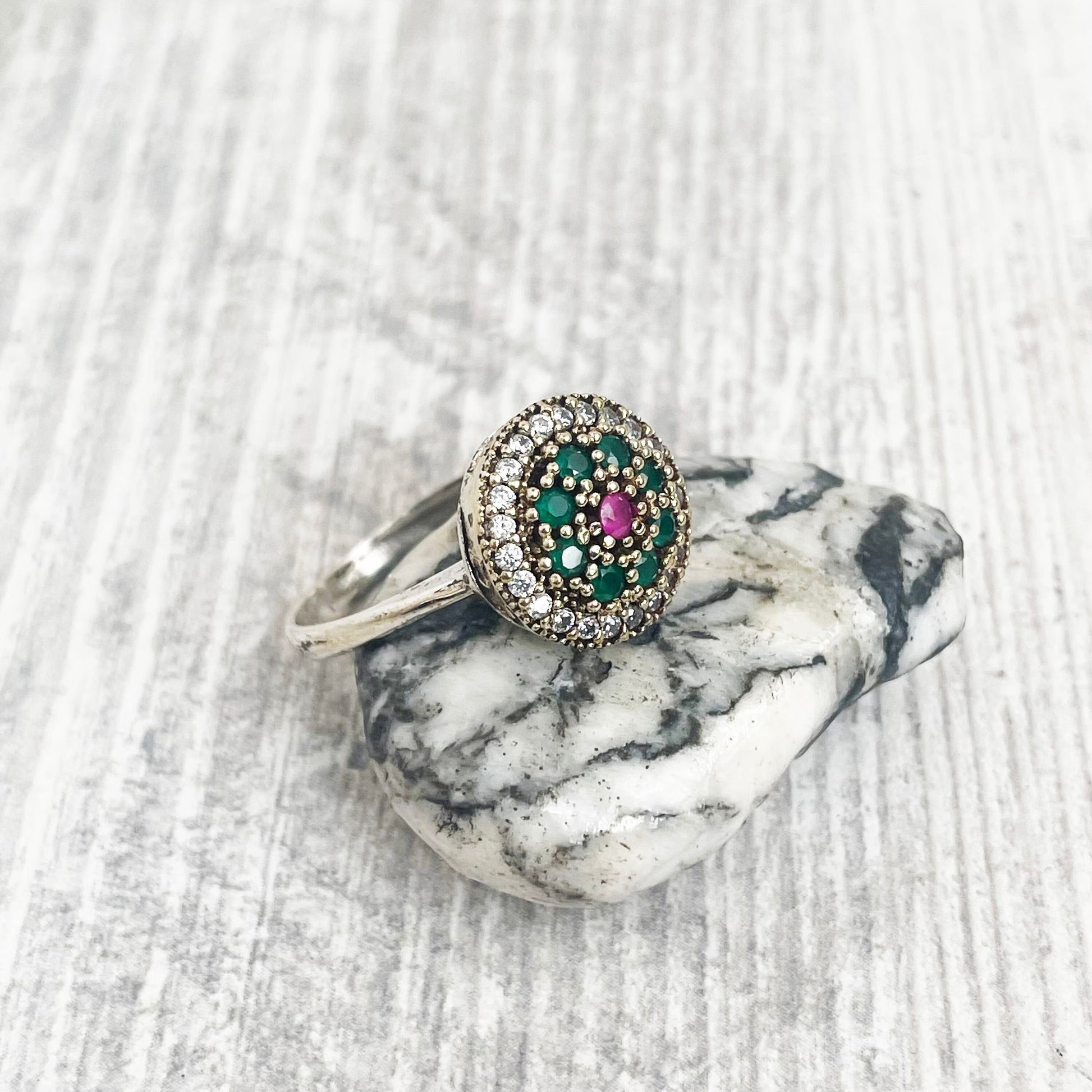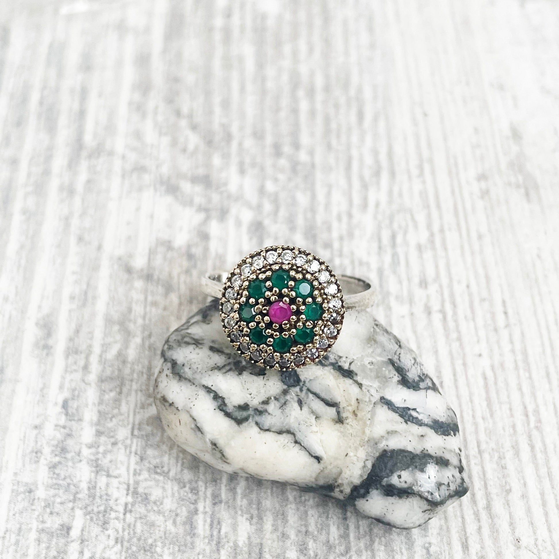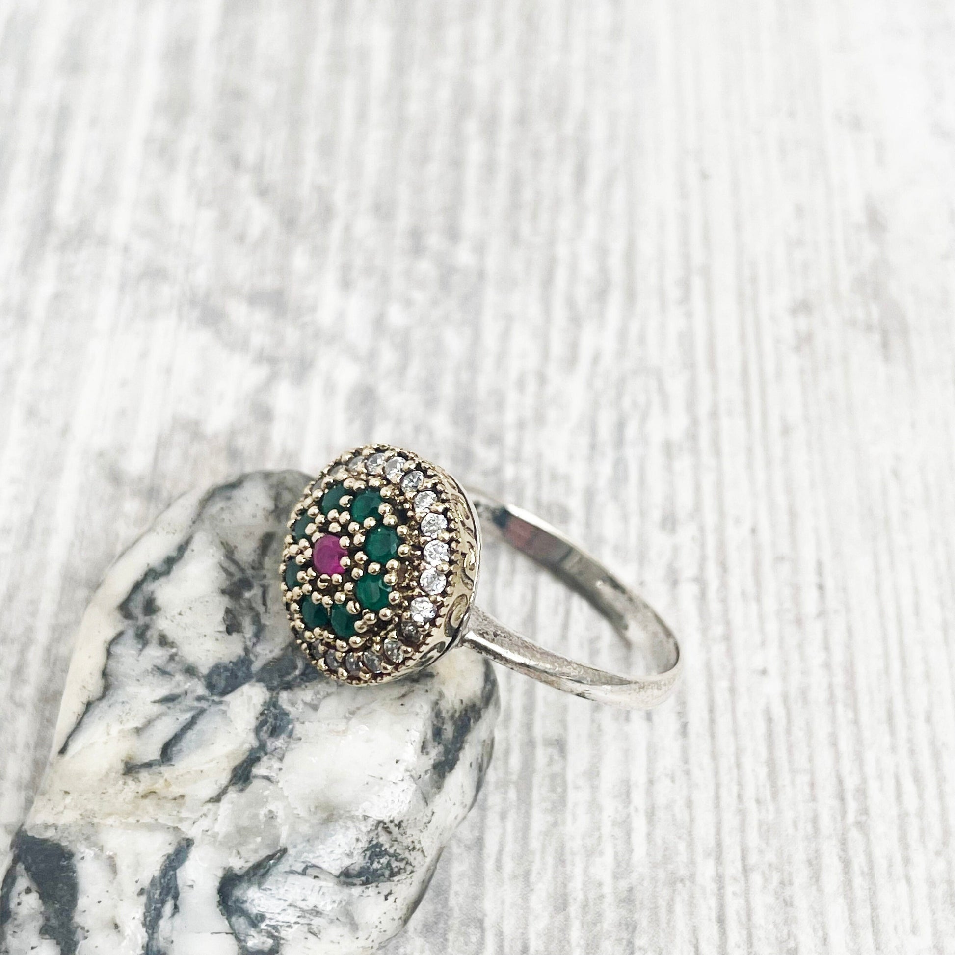 Turkish handmade, Women ring, Emerald stone, Gift for her vintage jewelry, 925k sterling silver women ring