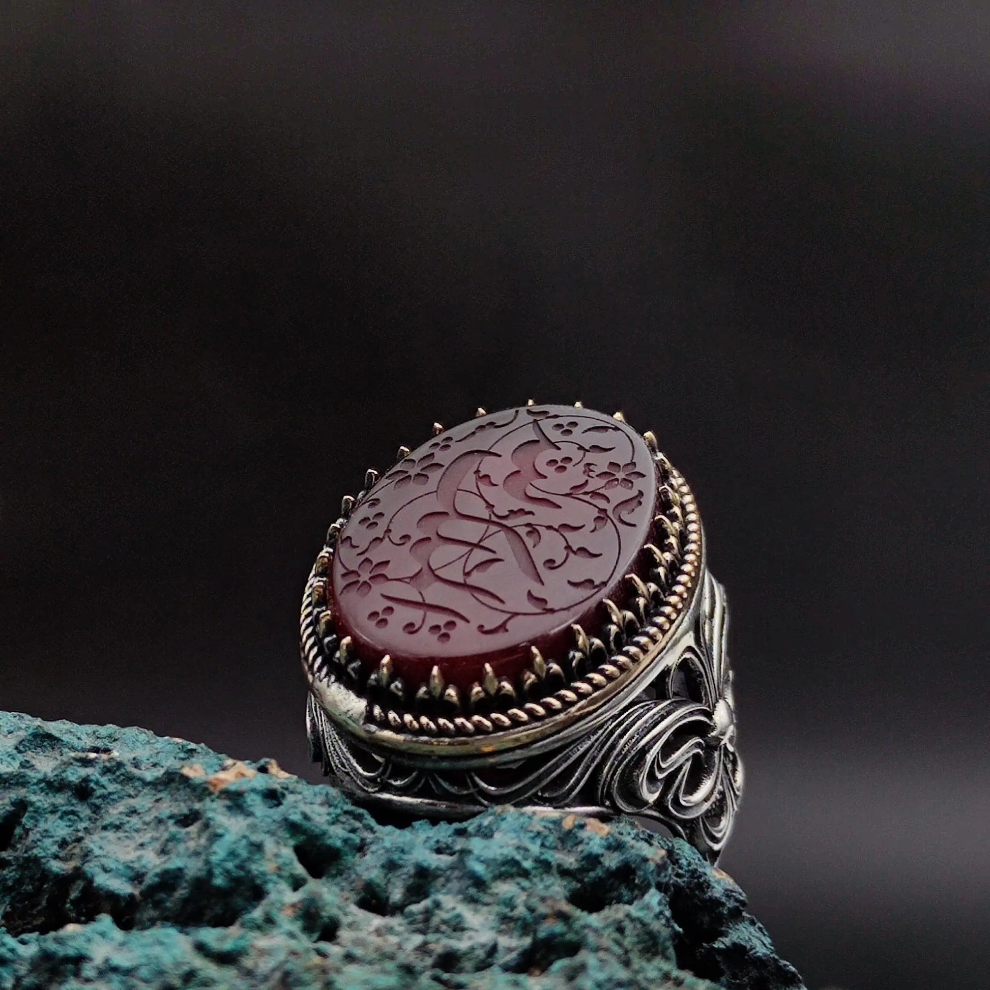 Unique Handmade Silver Men's Ring with carved Most Loved