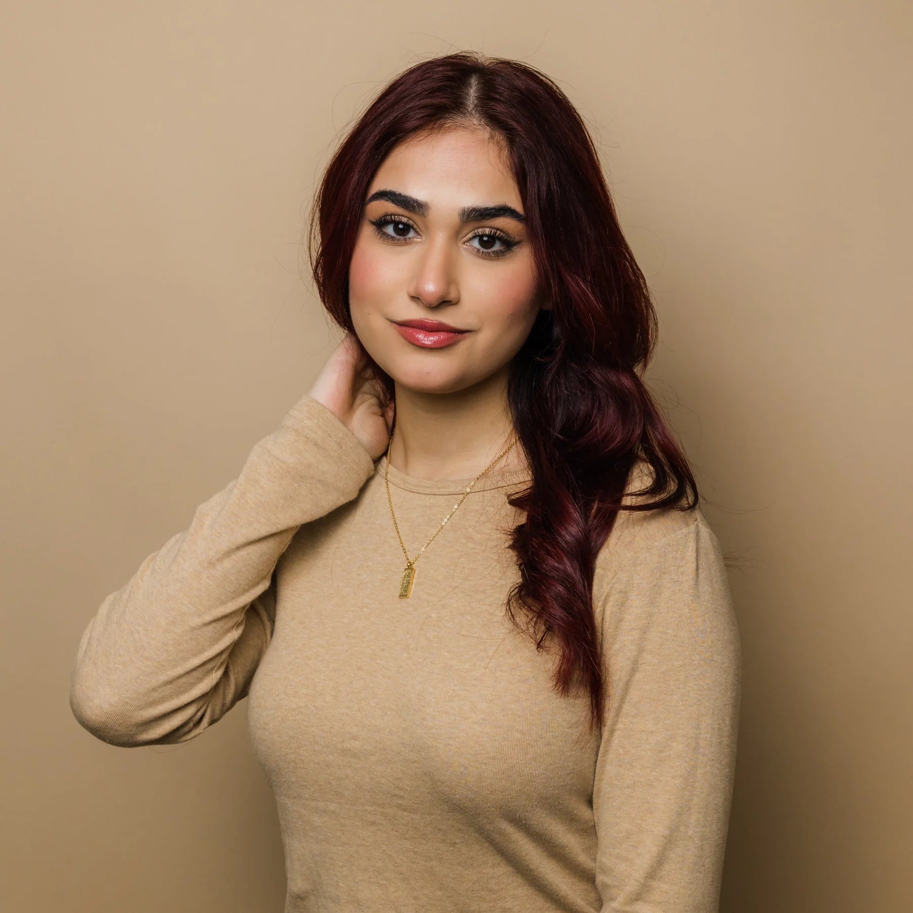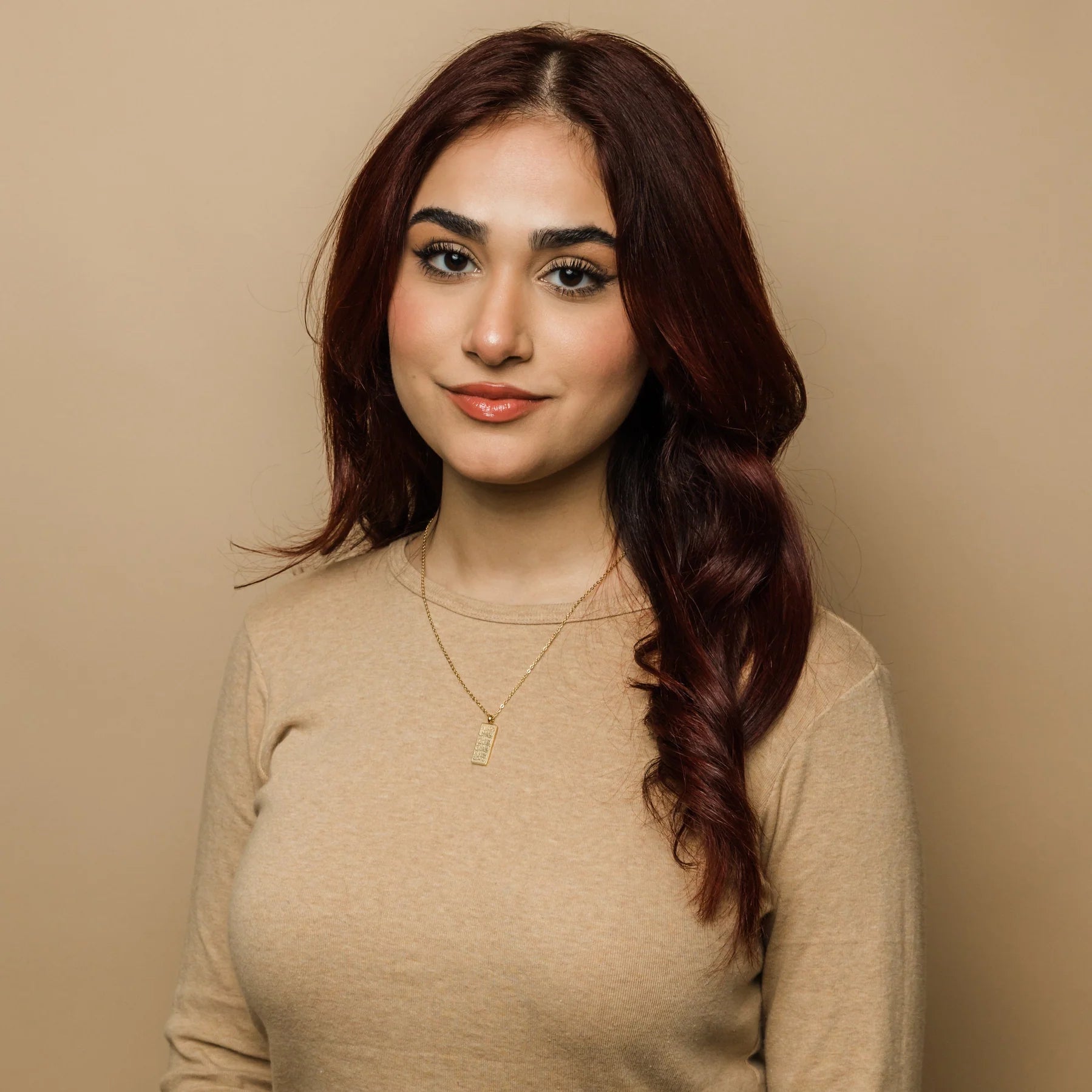 "What makes you different makes you beautiful" engraved elegantly in Arabic on this dainty rectangular pendant -- wear this to be proud of who you are and all of your differences.